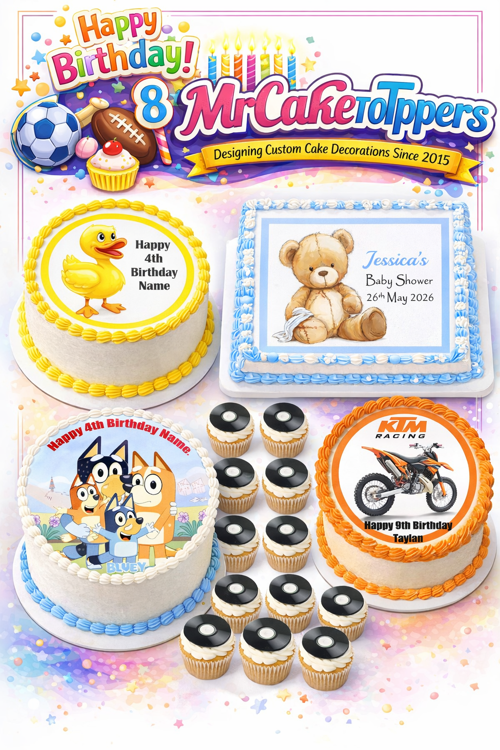 Our custom-made, high-quality edible icing images are easy to use and feature vibrant edible ink, adding a touch of elegance to your cake or cupcake decorations. You can turn your custom image, Favorite photo, or even a business logo into an edible icing sheet to decorate your cake or desserts. These icing sheets are crafted from premium-quality icing that adheres perfectly to your cake. We use top-tier edible icing sheets and food-grade ink to ensure the highest level of quality.
